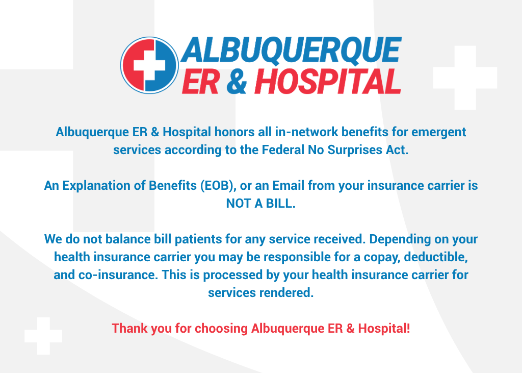 Experience concierge-level medical care in a comfortable, upscale environment at Albuquerque ER & Hospital. Our expert team of physicians is dedicated to providing top-tier, patient-centered care with little to no wait time—no matter your illness or injury. We proudly offer 24/7 emergency, inpatient, and outpatient services for the entire family.